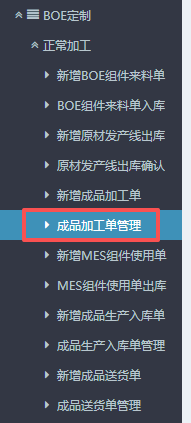 5.提交完后,回到左侧功能菜单里找到“成品加工单管理”