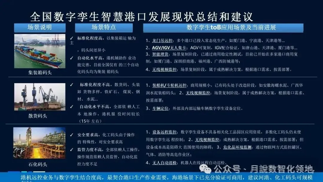从技术支撑来看,新一代信息技术的成熟应用为智慧港口提供了可能。5G的低时延、高带宽特性保障远程操控与高清数据传输,人工智能与大数据实现作业流程优化与风险预判,数字孪生技术可构建虚拟港口镜像,实现全流程模拟与精准管控。技术与业务的深度融合,推动港口从“数字化”向“智慧化”跨越,催生全新运营模式与服务形态。