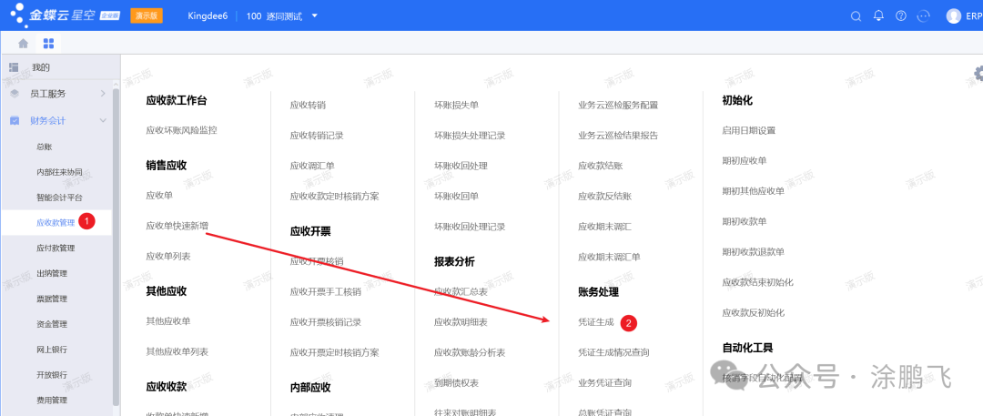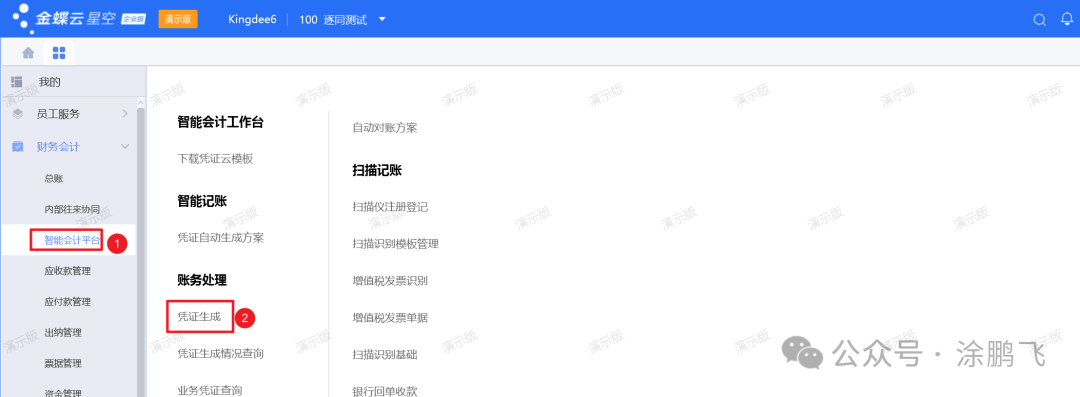 这里备注:去到各个财务模块都有凭证生成这个功能。