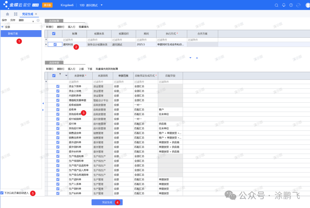 • ③选择需要生成凭证的单据类型,和凭证生成方式「是汇总,还是匹配等」。
