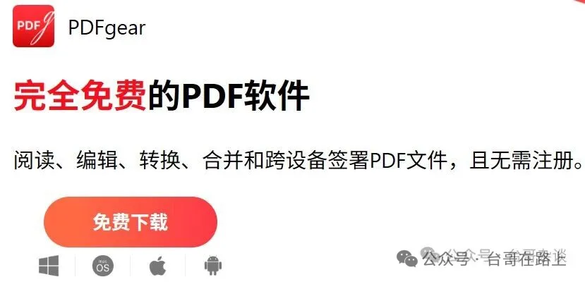 工作上难免要和PDF打交道的,大多数人只是阅读PDF,那么用浏览器打开就可以了。 但如果想要对PDF进行编辑,例如给上面添加一段文字,一张图片。 或者是要把多个PDF合并成一个,把一个拆分成多个。 要把PDF转换为word、图片、PPT、Excel,或者是反向的转换。。 这些常见的编辑动作,想要有一款软件,都能支持。 并且它还是免费的、没有广告的、操作方便的、不用注册登录的。 这样的软件,我知道的,只有这一款:PDFgear
