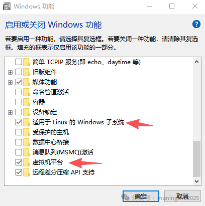 3.1 win+s,输入启用Windows功能,勾选下方2个功能
