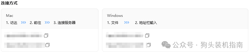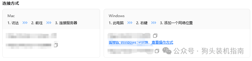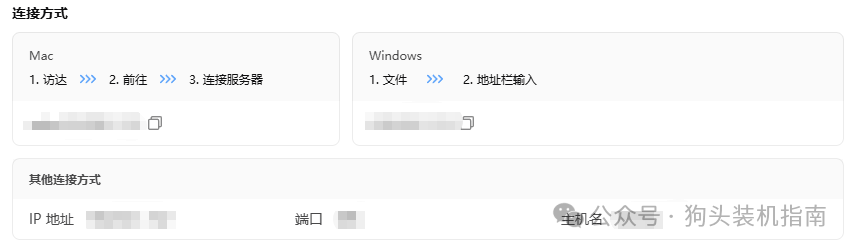 macOS:Finder→前往→连接服务器,输入 smb://NAS_IP/ 共享名;