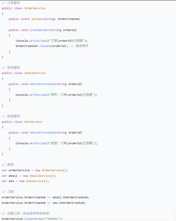好处:订单服务不关心谁在听,新增通知不用改订单代码