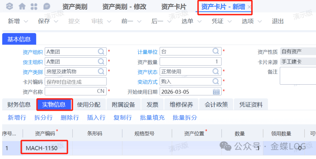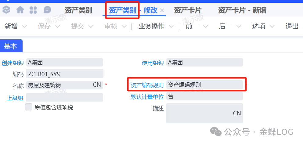 配置编码规则后,资产卡片在新增时,可按资产类别自动生成资产编号
