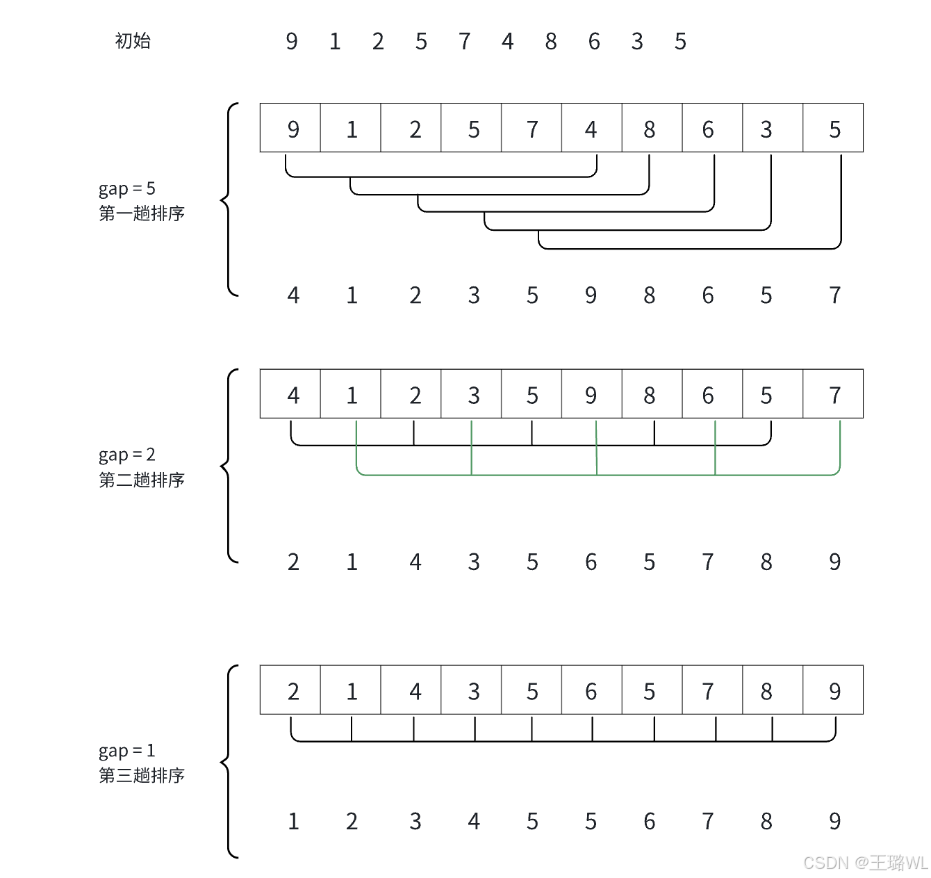 1. 当 gap > 1 时都是预排序,⽬的是让数组更接近于有序。当 gap == 1 时,数组已经接近有序的了,这样就会很快。这样整体⽽⾔,可以达到优化的效果。