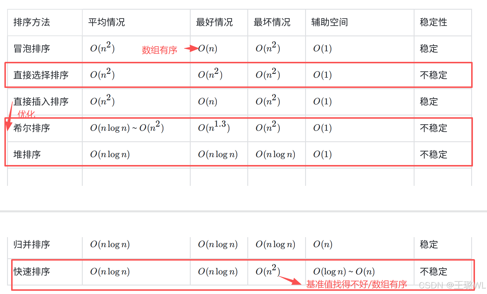 2. 时间复杂度:O(n2) 【最差情况:1+2+……+n-1,最好情况(O(n)):1+1+……+1】