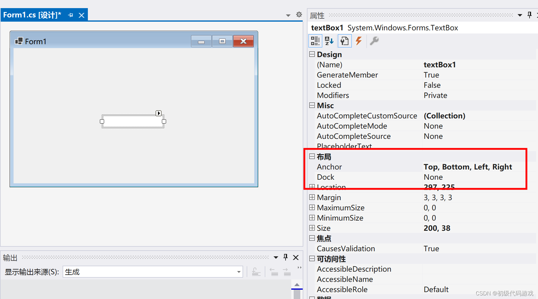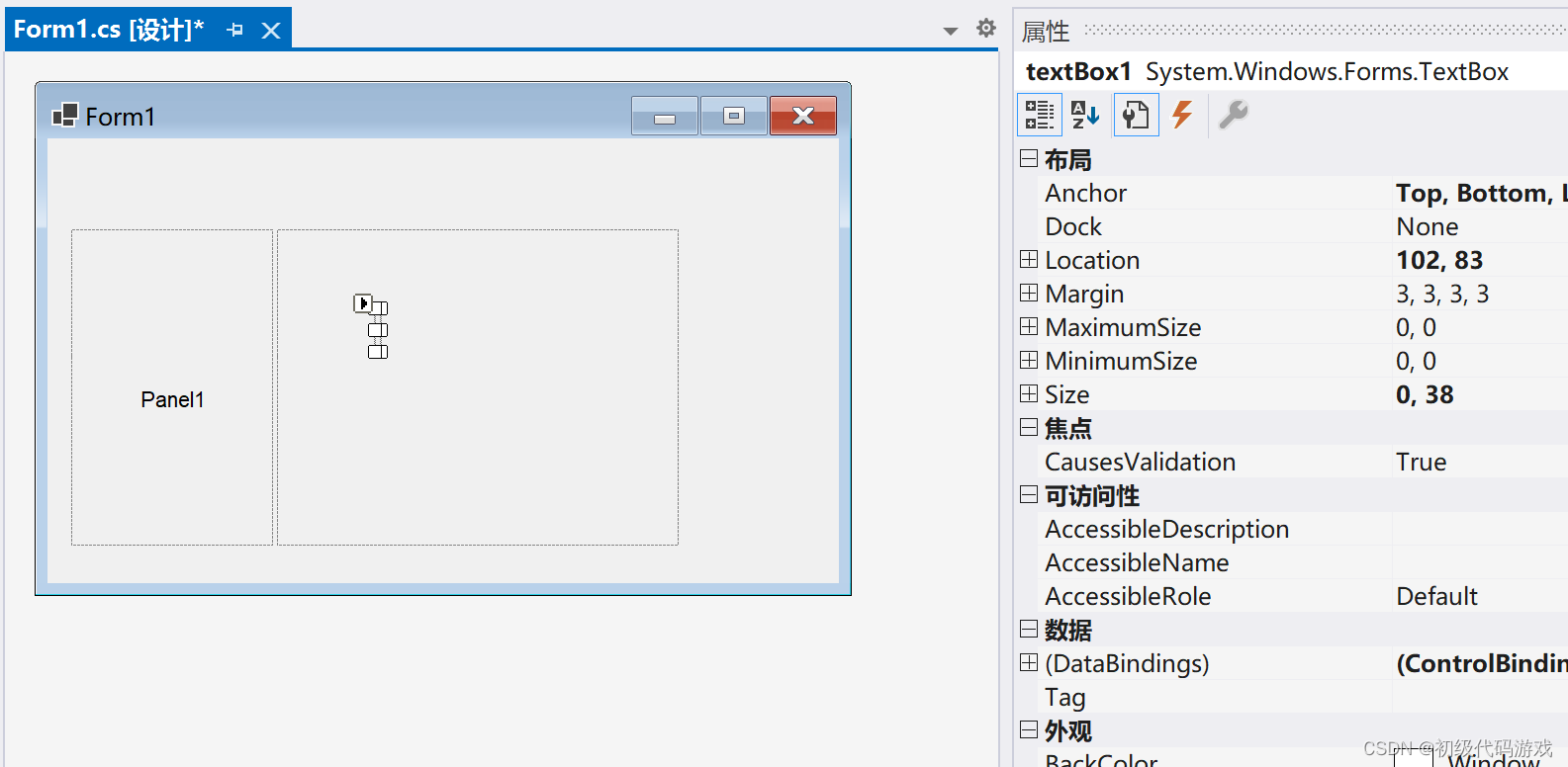 默认的名字是textBox1,以后要用这个名字来选择控件设置属性。