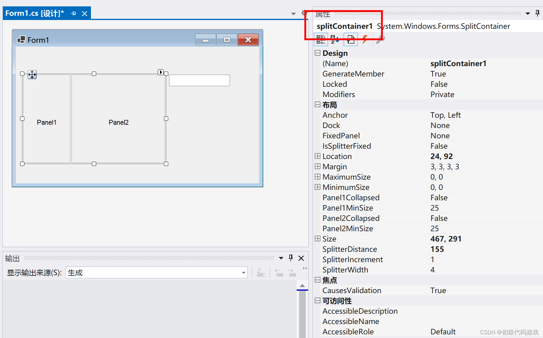 将容器控件拉大一些,可以用鼠标拖动中间的分隔条改变比例,如果不小心点到了子空间里面,就在属性窗口重新选择容器。