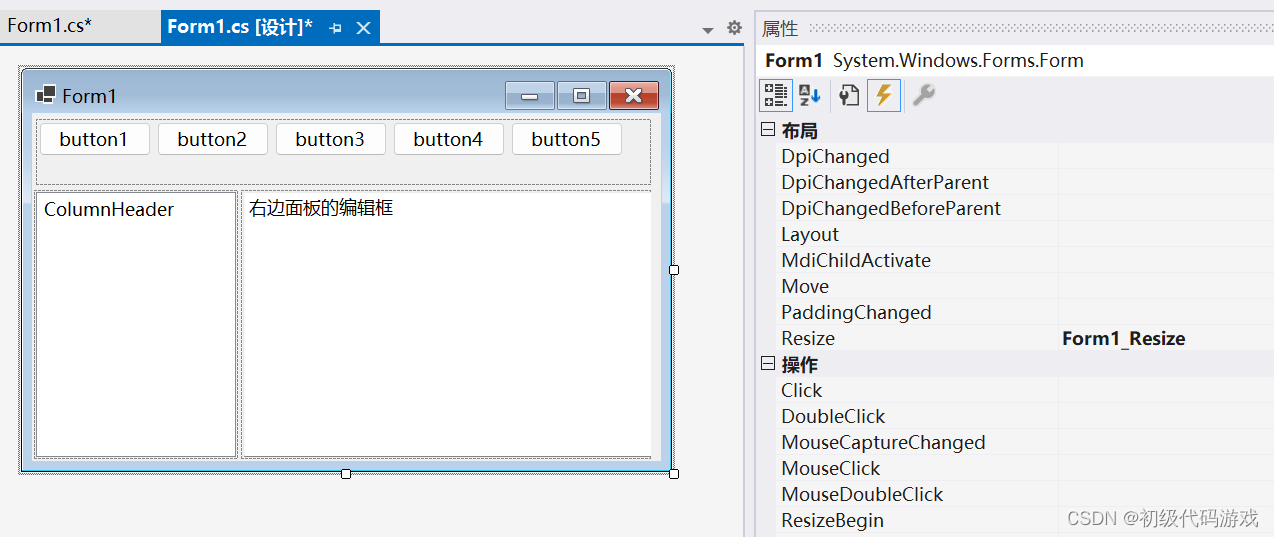 给窗口增加Resize事件的处理程序,在属性的事件里的Resize后面的编辑区域双击即可自动增加处理程序: