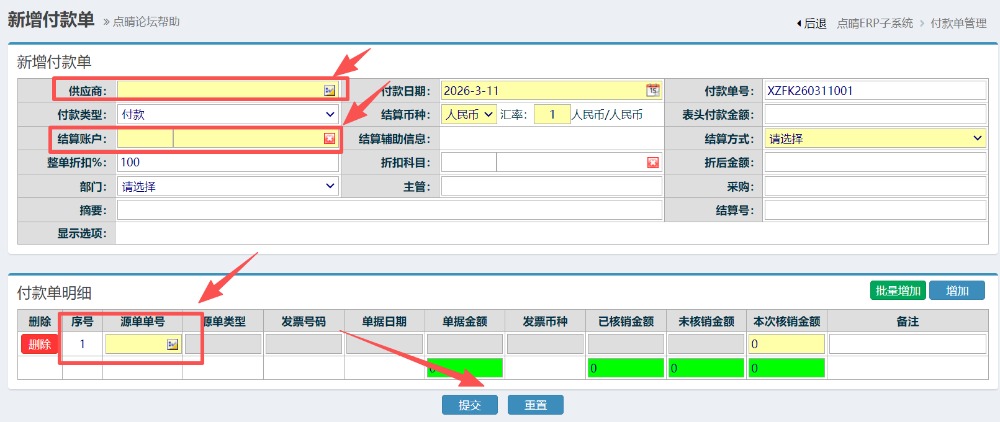 :ERP新增收款单/付款单操作指引