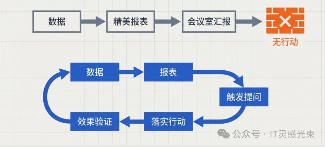 没人问这个数字背后发生了什么,没人追这个问题这周解决了没有,没人把改善结果和数据变化对应起来验证。