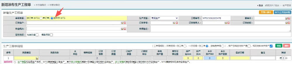 进入界面后,切换成按库存生产,注意:首次切换后,需要重新进入界面,如下图所示:
