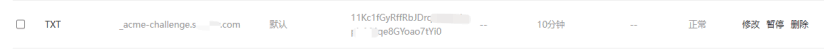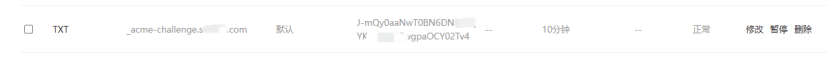 2、登录域名控制台,按照控制台输出的信息,添加TXT记录