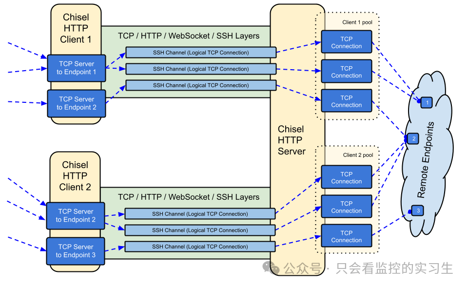 一个二进制文件 chisel = 客户端 + 服务端,跨平台(Win/macOS/Linux),无需 root,支持 UDP,自动穿代理,断线 0 感知。
