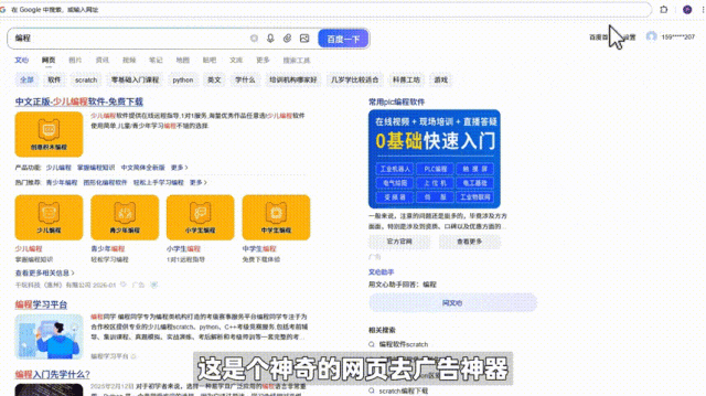 这是个神奇的网页去广告神器,除了常规的网页,搜索引擎的广告能去除。