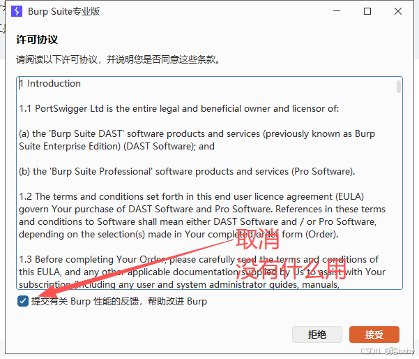 然后等一两秒会出现一个条款如下图(这里默认是勾选上的) 这里不要勾选