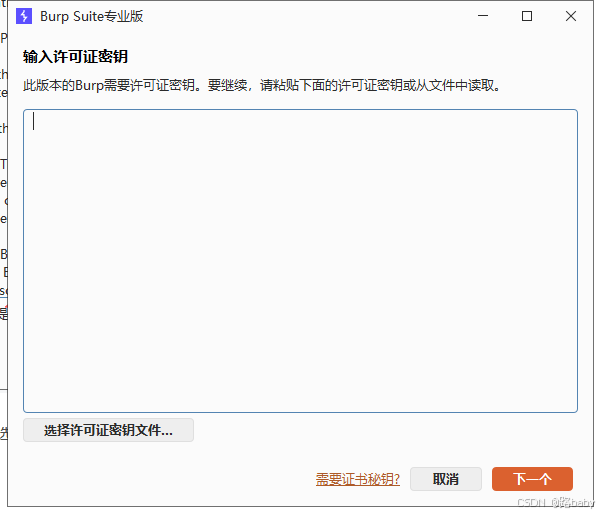 随后按照下图步骤将burp第二步给的秘钥粘贴进注册机 并将注册机生成的最后的秘钥粘贴进burp 按照下图步骤进行 然后点击下一个