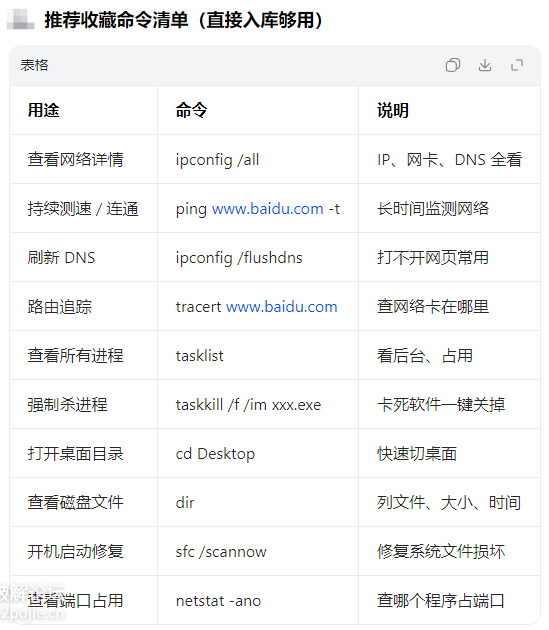 保存 ping、ipconfig、dir 等常用命令,一键执行。