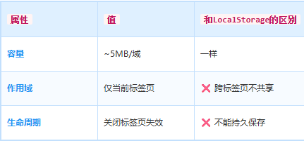 • SessionStorage = 抽屉,只在当前标签页有效