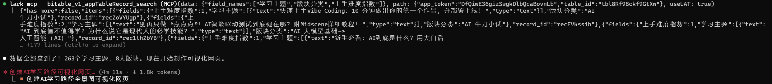 再比如我想,直接在Claude Code中读取我飞书帐号下的某篇文档,并基于文档中的内容,做成一个可视化工具。