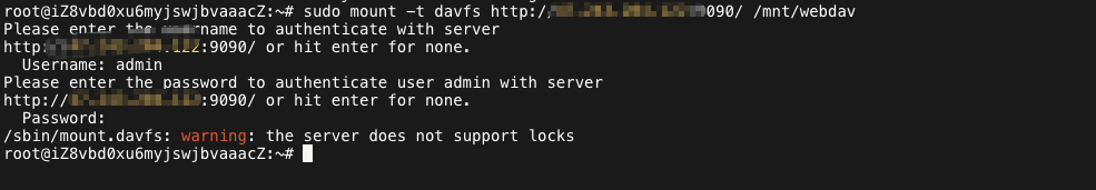 sudo mkdir -p /mnt/webdavsudo mount -t davfs http://ip:端口/ /mnt/webdav