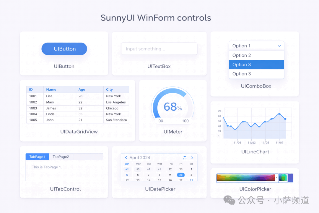 工业软件场景,它真的能打很多 WinForm 开发者不知道的是,SunnyUI 那一套工业控件是它区别于大多数 UI 库的杀手级能力。 做过工厂监控软件、PLC 数据采集系统、嵌入式上位机的人都知道,工业场景对 UI 的要求很特殊: