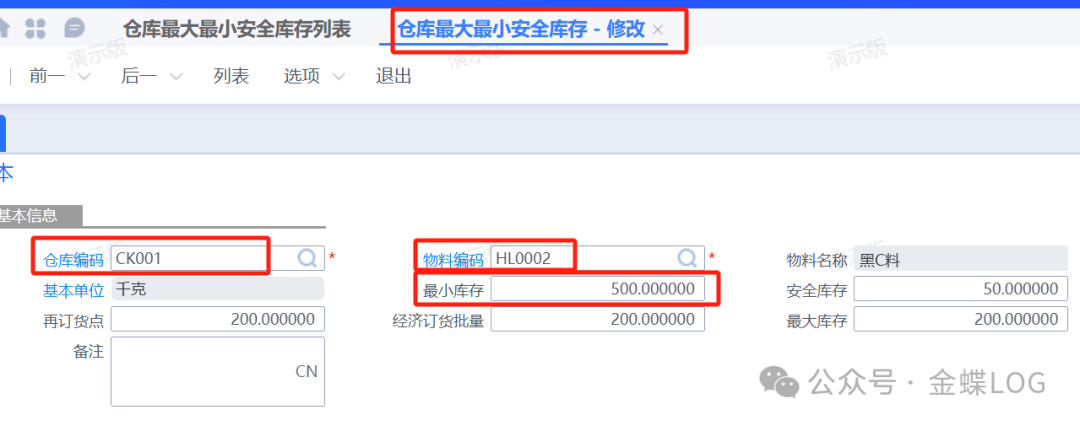 [点晴模切ERP]金蝶云星空最小库存和最小订货量,这两个字段到底怎么用?