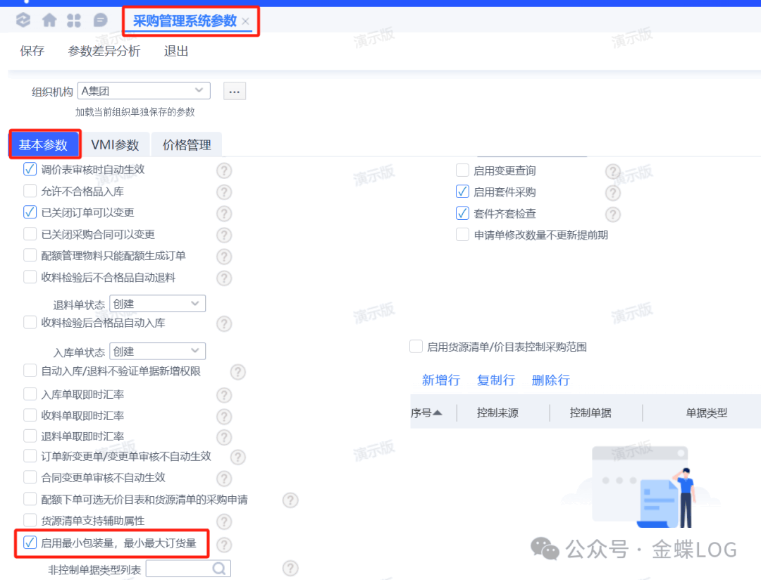 例外处理 如果不想对某种采购订单类型进行控制,可以在【非控制单据类型列表】里面选择对应的单据类型(比如标准采购订单) 这样用户在以小于最小订货量的数量(100)下标准采购订单时,系统则不会自动进行调整。 四、总结在实际业务中,根据物料属性、供应周期、存储成本等因素,分别设置合理的最小库存和最小订货量,让系统更精准地管理物料。以上便是最小库存和最小订货量的介绍。您学会了吗? 阅读原文:原文链接 点晴模切ERP更多信息:https://moqie.clicksun.cn,联系电话:4001861886 该文章在 2026/4/14 15:18:18 编辑过 |