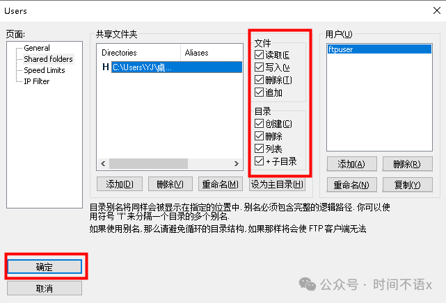 • 端口:FTP 监听端口,默认为21,如果修改填写修改后的端口。