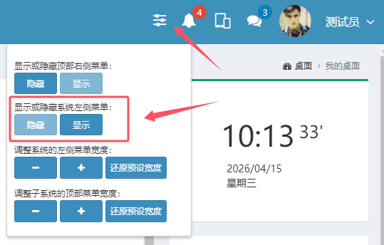 这里还提供了左侧菜单宽度调整等功能。