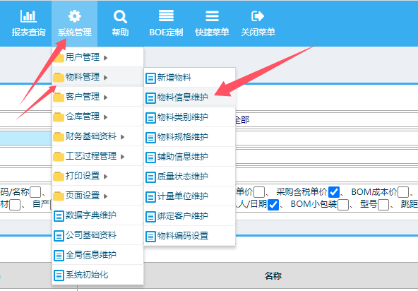 以管理员或有权限身份进入ERP系统-》系统管理-》物料管理-》物料信息维护