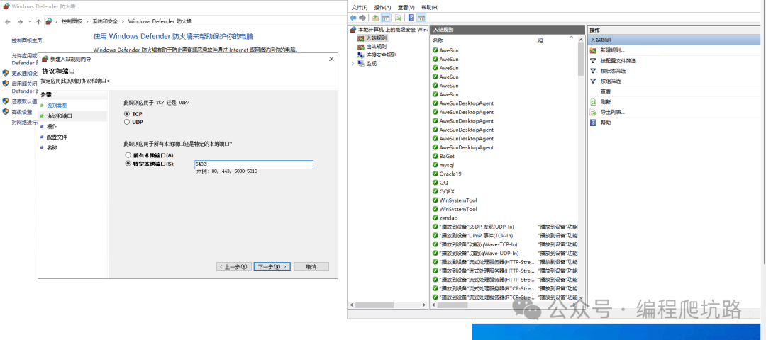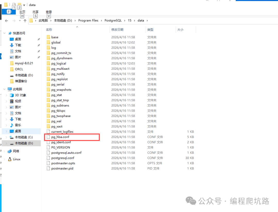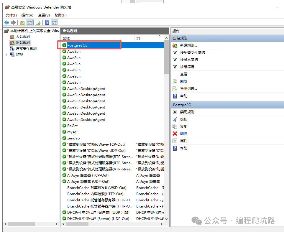 ✅ 到这里,PostgreSQL 已经安装成功! 🌐 三、开启远程连接(关键配置)默认只允许本机访问,按下面设置即可远程连接。 1. 修改配置文件找到 data 目录下的 pg_hba.conf ![]() 打开文件,找到 IPv4 配置,把地址改为: ![]() ![]() 2. 重启 PostgreSQL 服务配置修改后必须重启,才能生效。 ![]() 3. Windows 防火墙放行 5432 端口(Windows Server 必做,普通电脑建议也配置)