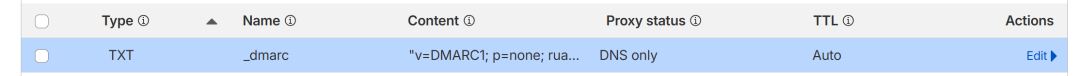 p=none 表示目前只监控,不拦截。等你确认发件正常之后,可以改成 p=quarantine(进垃圾箱)或 p=reject(直接拒绝)。