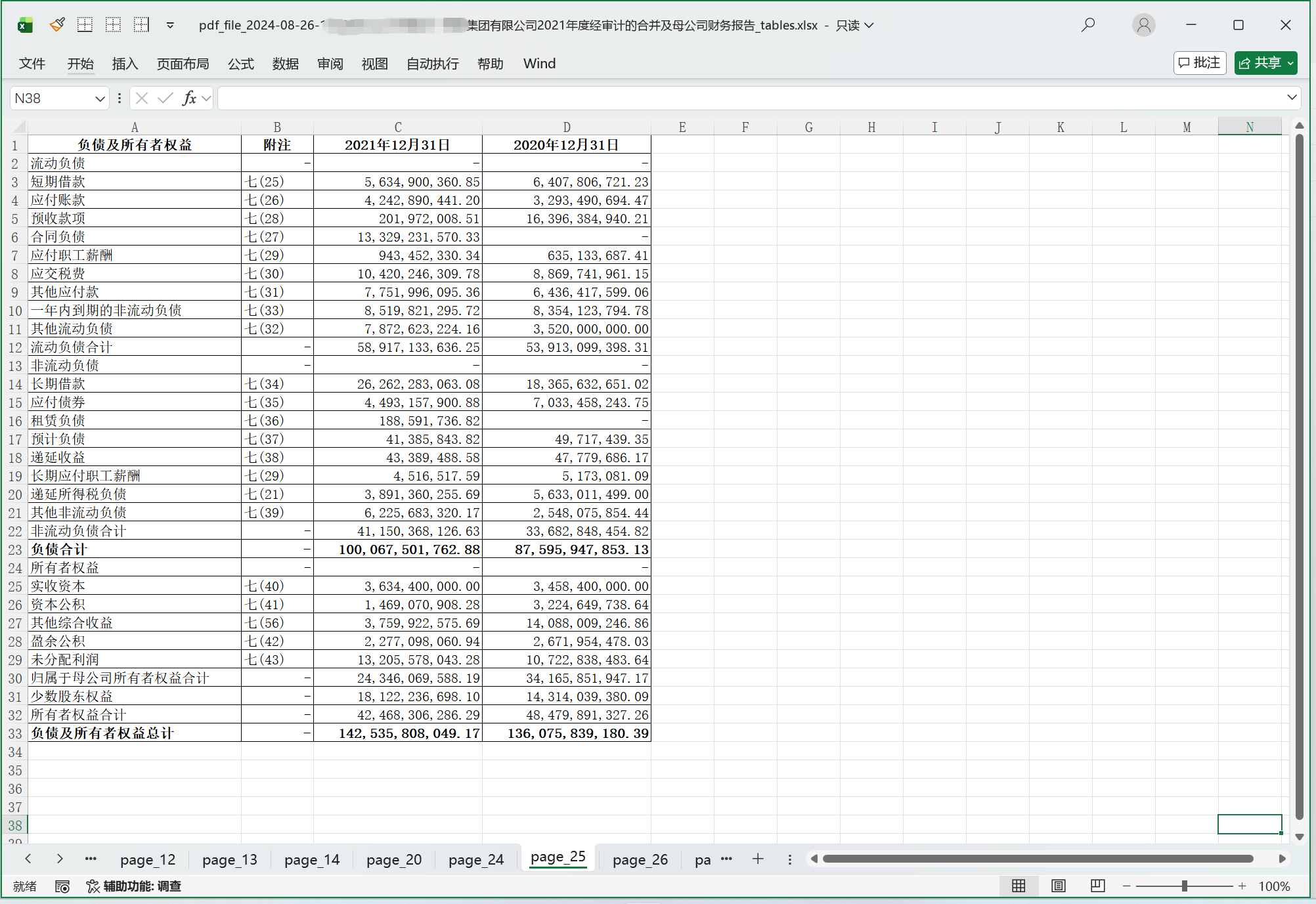 ▲审计报告 - 合并资产负债表的第一页