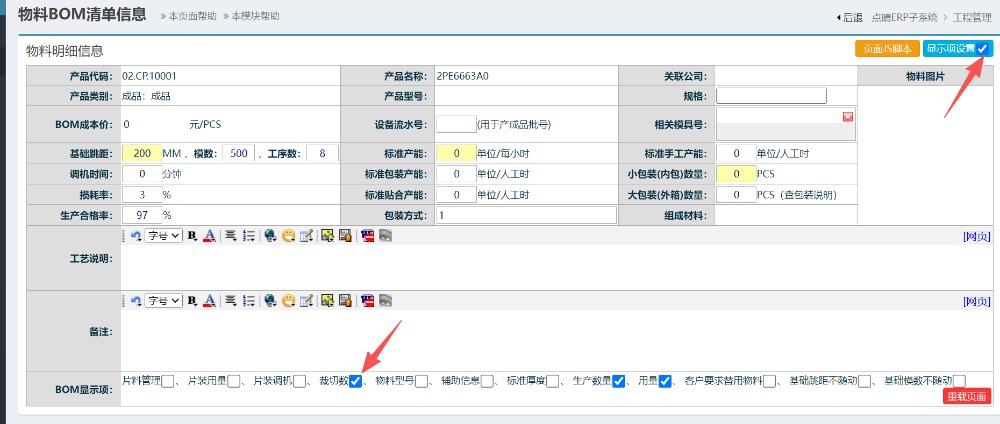 点晴模切ERP工程bom制作-钢片模切相关资料录入说明