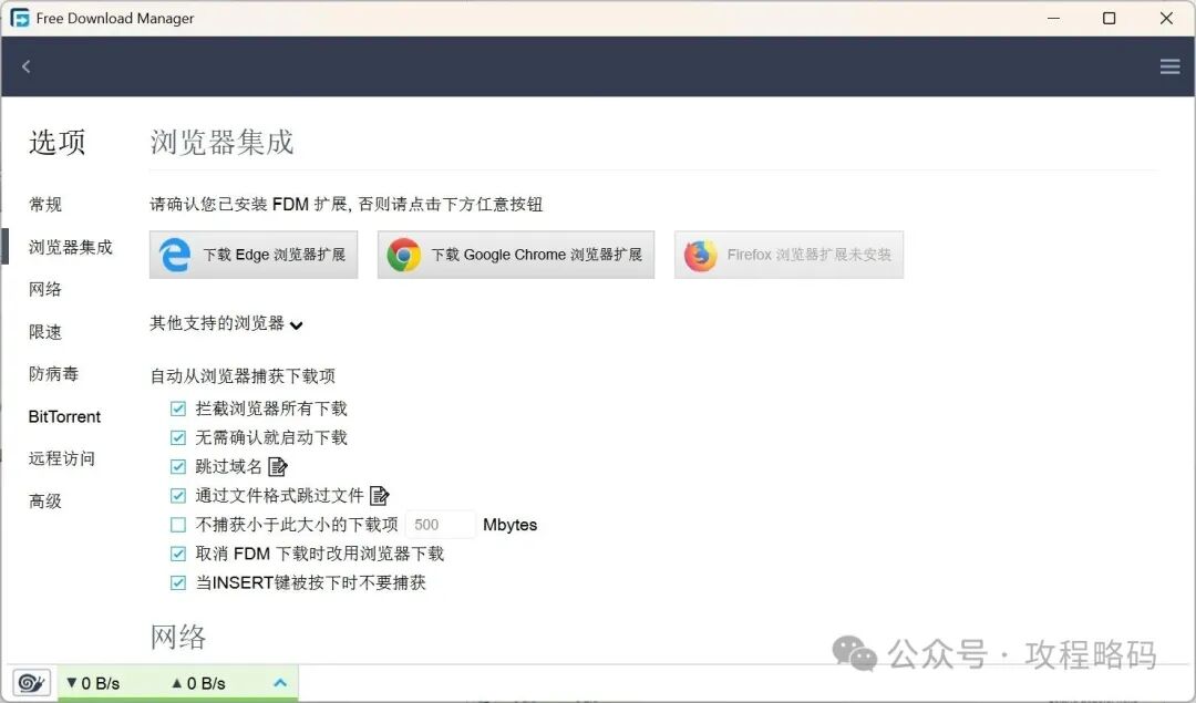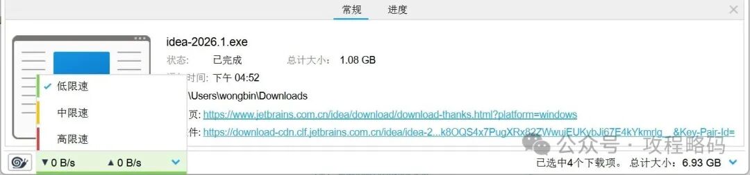 现在的插件虽然不多,但是其开源免费的特点,和众多使用者的青睐,未来应会慢慢的丰富的。在使用过一段时间后,大部分时间都挺好。但有时候下载的文件会有损坏。还有一点就是我觉得界面做的挺粗糙,或者说我不太喜欢它的界面设计。用起来不太习惯有点反人类。于是发现了新的大陆FDM。全称 Free Download Manager 从名字我们就可以知道它是一款完全免费的下载管理器,命名方式和IDM类似。没错它就是IDM最完美的替代方式,甚至在用户体验上吊打IDM。并且拥有全球庞大的用户群体。拥有现代化友好的用户界面,界面排版美观清爽没有广告。可以清晰的看到文件的来源、大小、是否支持断点续传。点击蜗牛图标,可以直接切换到慢速模式。也可以选择三种不同的限速挡位。FDM集成了IDM和Gopeed两款下载管理器的所有优点,并且具有自己的特色。支持简体中文,优美的界面,免费跨平台、支持扩展、接管浏览器、资源占用极低等,非常的好用。FDM就是迄今为止我心中最完美的多线程下载管理器。