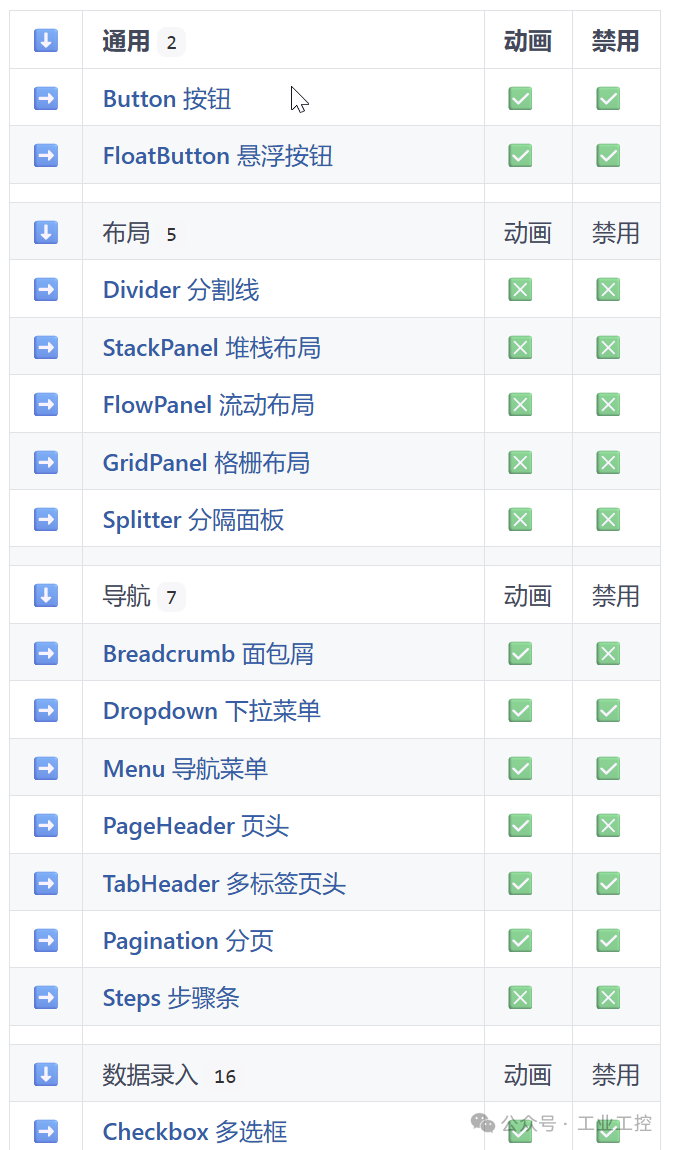 六十多个控件覆盖大部分场景。 做数据录入?有输入框、日期选择器、下拉选择。做数据展示?有表格、树形控件、图表。做聊天界面?有消息列表、气泡组件。基本覆盖了桌面应用开发的大部分场景。而且这些控件都支持禁用状态、动画效果,交互细节做得比较完整。