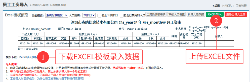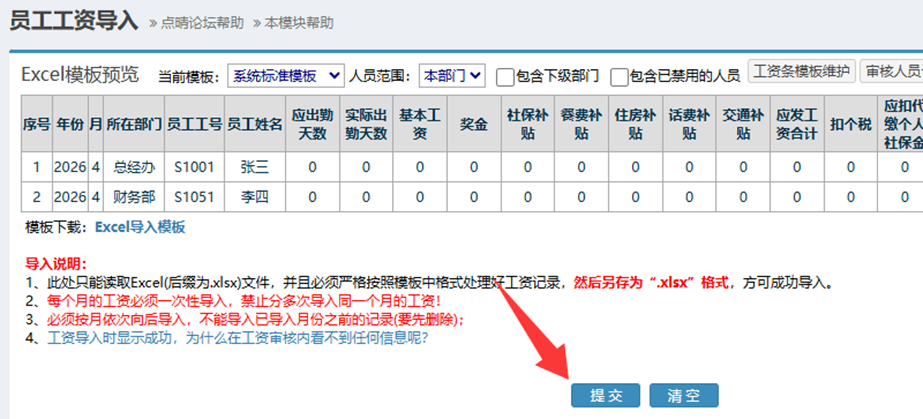 每个月的工资必须一次性导入,禁止分多次导入同一个月的工资;