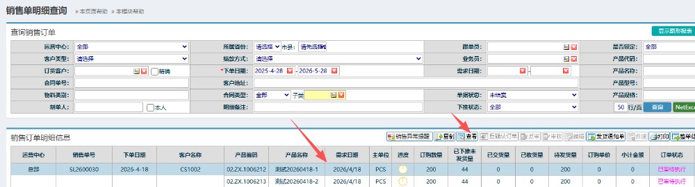 操作步骤:销售管理——销售订单管理——订货单明细管理;如下图所示:
