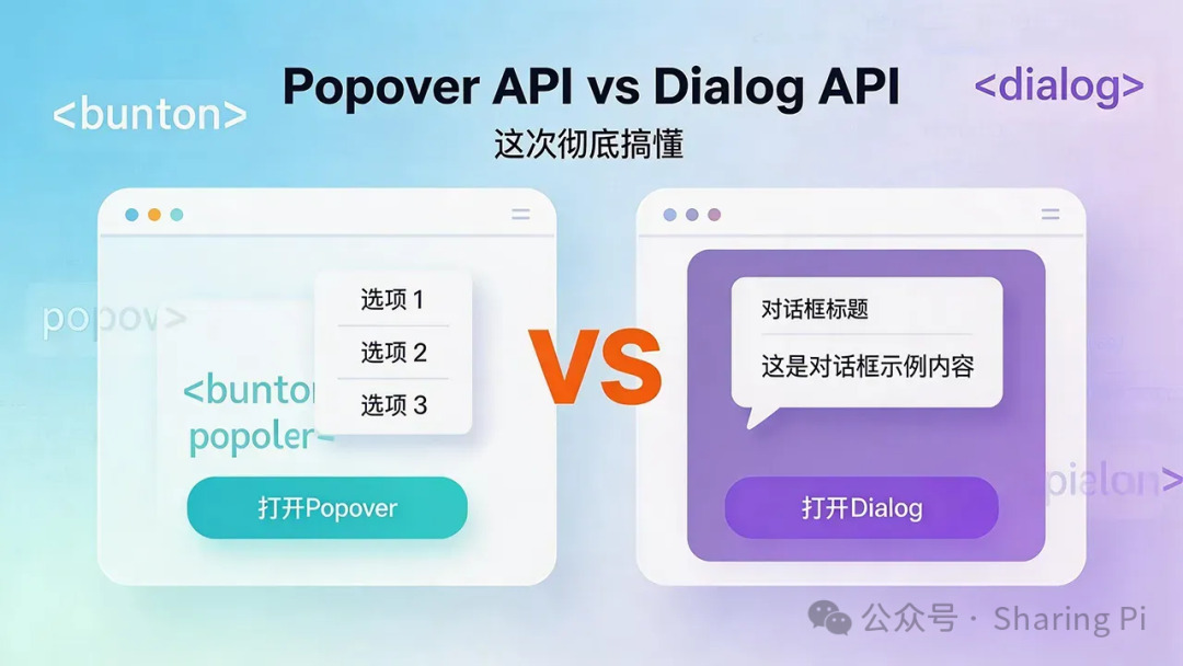 在日常开发中,我们经常需要创建各种弹出层:下拉菜单、提示框、模态对话框……过去,我们依赖各种JavaScript库或手动管理焦点和ARIA状态。现在,浏览器直接提供了两个强大的API:PopoverAPI和DialogAPI。但问题来了——它们都能创建弹出层,到底该用哪个?如果你简单地将它们混为一谈,可能会写出可访问性...