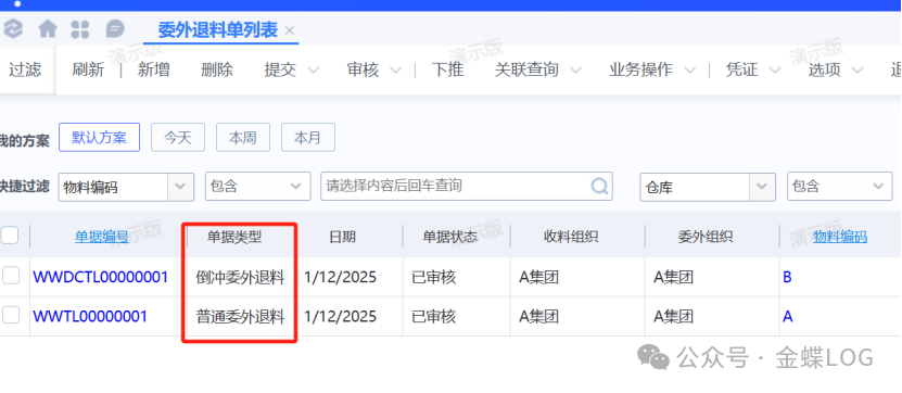 K业务区别退料单主要有两种类型,一个是【普通委外退料】,另一个是【倒冲委外退料】。在讲解退料单前,...