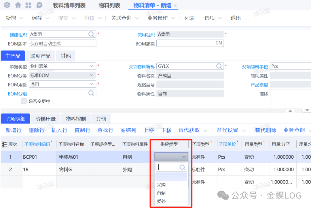 Q问题描述在物料清单(BOM)的维护中,有一个字段作用很大但容易被忽视,它就是【供应类型】。本文将为您厘清其核心逻辑与业务影响。学完本篇文章,您将学会:①【供应类型】字段的作用。②【供应类型】字段的主要用途。③【供应类型】字段对外购属性物料的限制。 A问题解答一、供应类型字段的作用简单来说,供应类型决定了MRP/MP...