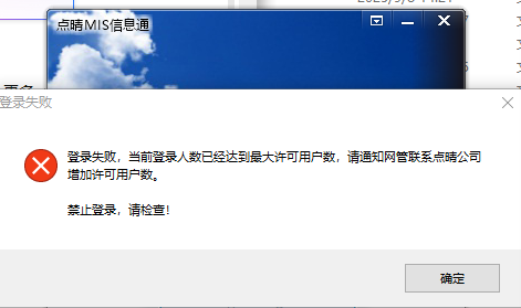 点晴MIS/OA信息通提示登录失败:当前登录用户数已经超出授权数,请联系点晴公司增加授权数!如何解决?​点晴MIS信息通PC客户端 点晴MIS信息通手机APP或HTML5页面登录 这个是点晴MIS信息通(企业级即时通讯IM系统)PC客户端或手机APP的提示,不是点晴OA的提示。 点晴OA是纯B/S架构的系...
