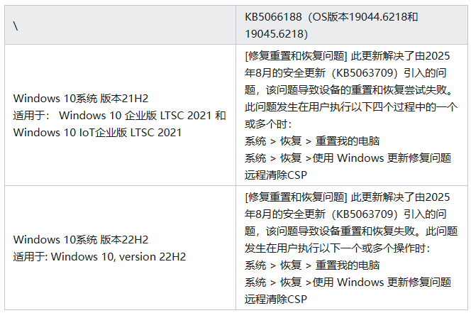 如果是 Windows 10系统遇到了卸载补丁出现报错 / 没有找到补丁问题,那有可能是电脑早已更新安装了微软紧急发布的更新补丁 KB5066188。该补丁修复了 KB5063709 引起的问题。