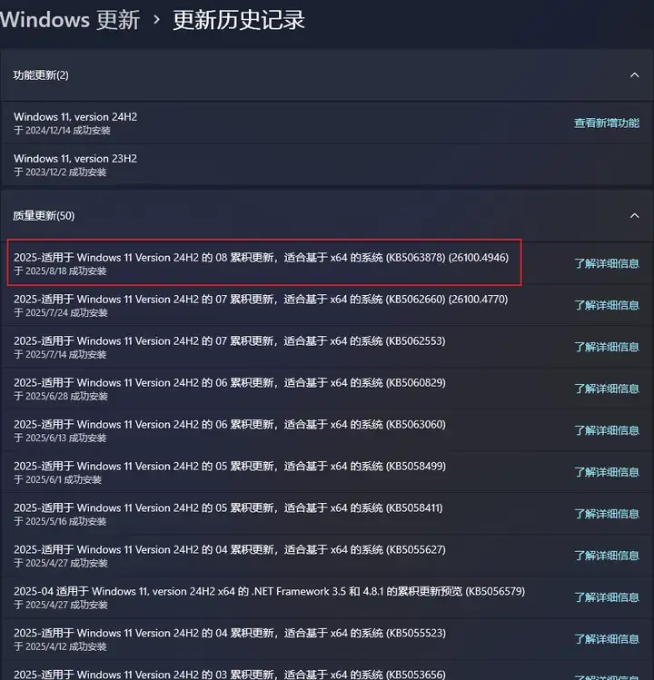 后续关于Windows 11 八月安全更新 KB5063878