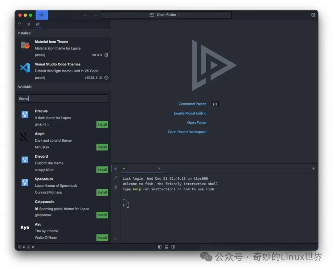 安装完成后,打开 Lapce,你会感受到启动速度的震撼! 使用 Lapce:从入门到熟练的实用技巧Lapce 的使用门槛极低,但功能强大。以下是快速上手的几个关键点: