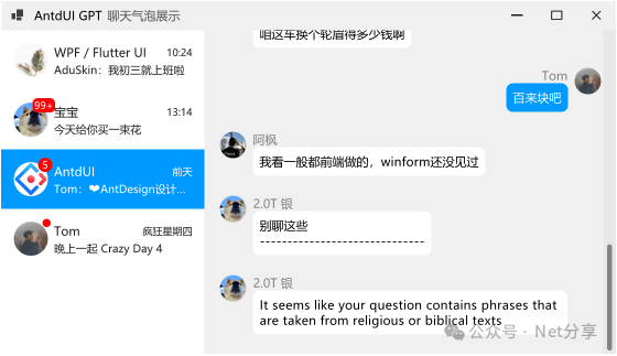 AntdUI 是一个基于 Ant Design 设计语言的 WinForm UI 界面库,致力于将现代美观的前端设计风格引入桌面应用程序开发。采用纯 GDI 绘图技术,无需任何图片资源,全面支持 AOT 编译,最低兼容 .NET Framework 4.0