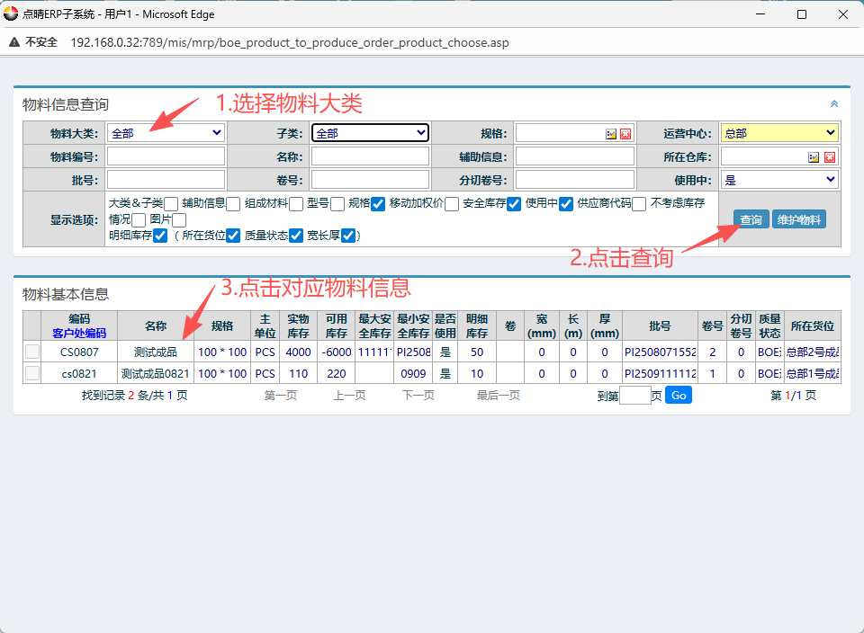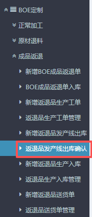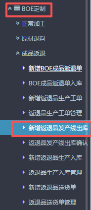 ![]() ![]() 1.进入ERP系统之后,在左侧的功能菜单里找到“BOE定制”,点开“成品返退”,点击“新增返退品发产线出库”。 2.进入界面后,按图操作:选择发货仓库,备注可根据需要补充。 3.接下来在下方点开“物料编码”,会有物料信息窗口弹出。 在弹出的物料信息窗口内,按图操作:点击选择物料大类,点击查询。然后点击对应物料信息。 4.选好物料之后,检查确认库存和发货数量,以及BOXID和流水码。点击提交选择“待出库”或“立即出库” 5.提交后,回到左侧功能菜单找到“返退品发产线出库确认” 6.进入界面后,按图操作:可用代码或名称筛选查找,点击查询。然后点击对应物料信息,先进行出库,再上传BOE 流程结束。 下一步教程跳转链接: 点晴ERP-BOE返退品生产入库流程 点晴模切ERP更多信息:http://moqie.clicksun.cn,联系电话:4001861886 该文章在 2025/9/22 16:33:38 编辑过 |