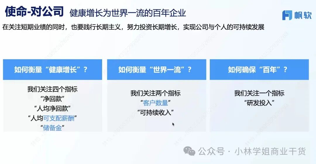 感谢帆软CEO陈炎的分享,从0-15亿+,从毕业后创业至今快20年,这是一个认知、组织、数据驱动增长的故事,是一个在无锡人才密度并不高的地方一路摸排滚打出来的实战故事。 以下是一些围绕公司管理“事、人、钱”印象深刻、引发思考的观点总结。 ![]() 事情(如何管理业务及业务流程): 看十年、谋三年、干一年:十年确认战略、财务目标、客户成功指标、专项目标,三年盘点市场空间和机会点。干一年,围绕客户、流程、组织和人才制定工作计划。 增长:有效增长——有利润的增长——消除浪费,长期增长从目标分析、财务分析开始,消除浪费这个事情要通过一线员工+文化驱动+工具来实现。 ![]() 取舍和客户旅程路径的最优解思考,主动定义“有价值的事情”,利他才能利己:1)选择客户:从非标走向标准化,就意味着不给“非标”资源。2)让客户用起来并分享:搬运最佳实践:让客户用起来,以标杆客户为核心考核,3)实施:帮助客户培养数字人才,利他到利己,65%来自产品,35%来自实施服务。 ![]() 学习标杆、落地适配帆软不同阶段的“业务流程”和规则: 当年最早没有资源、也不知道管理,就在天涯学习华为的管理方法。通过学习不断在建立自己的业务流程,比如LTC的落地适配,赢单的流程对应能力训战。这点让我挺感慨,因为一大票创业公司会觉得大公司那套没用,但关键不是套着用,是理解并针对性适配。 比如所有人都说以客户为中心,落到组织里的规则是:接投诉电话,10秒内不接就转到创始人。 ![]() 数据驱动,先BI自己:市场空间、业务流程、个人绩效等等。 20%的人因为相信所以看见,80%的人还是要看到各种数据来相信,比如公司的客户空间。 也通过数据推进管理。比如流程关键控制点分析,管理线索、机会、应收。比如从经营、业务、科目、专项上纲举目张。同样通过数据分析来看市场leads和销售转化到底“谁有理”。 ![]() 人(建立和落实组织文化): 创始团队的决策机制——共识营:无法什么事情都聊(吵不完),只探讨最重要的几个事,让战略、客户、组织、文化、分配达成共识。 同学文化:团队成员主要来自校招,因此称呼团队为同学。校招的筛选标准是招优秀的人,也会通过考试去看他们的底层逻辑———学习能力。而不是只看“学历”,或者让学历高的人觉得大家要为他服务。 公开财务报表:大家连父老乡亲可能都觉得公司赚大钱了,实际上通过报表才知道费用和成本是多么高,更能够“上下同欲”。 永远思考怎么让流程最短:比如不贴发票,报销慢影响应届生体感。业务团队服务客户,本部团队服务业务团队,合伙团队服务本部团队落地。甚是通过财务体系优化来实现了“降本”。 没有裙带关系:“不因为自己哥哥过得一般,就给他介绍生意” ![]() 钱(思考如何分配、激励,才能让事情和组织转得更好): 以贡献者为本,“不是对所有人好”:基于利润、客户满意度生成薪酬包,按照梯队核心进行“激励分配”。事先约定有价值的东西:针对山头项目给奖金。 财务核心指标中除了关注净回款、人均净回款、储备金,也关注人均可支配薪酬和研发投入——很大提高人才质量。提高可支配薪酬。 总而言之,围绕目标管理、流程建设和运营、精益管理和分配不断下功夫。 最让我感动的是,我问最早怎么招到人,他说是“真诚和愿景”,有的人选聊了8个小时,第二天还带着他去跑客户去感受。而当年吹过的“牛逼”现在也算是实现了。第二是谈及不上市时候他说,是为了“留住同学”,如果他是马斯克,当然可以“拿的最多”,而他认为、自己不是,而是同学们在创造“更大的价值”,所以要“克制”。 ![]() “虽然我们参与的同一场竞争,但是我们彼此看到的却是不同的作战地图”。因为相信,所以看见。 阅读原文:https://mp.weixin.qq.com/s/BOQ7NnQgUcDrEAsln1rL7A 该文章在 2025/9/20 11:08:30 编辑过 |